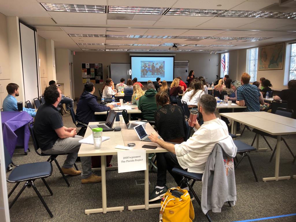 It was an early morning. Jamie and I thought we had to be ready at 7:45, but boy, were we wrong. Ah, well. We had an early breakfast which was nice. At 9:15 in the morning we were picked up by Suzette and driven to the Valencia Winterpark College. We were welcomed by Valerie (who teaches centuries humanities) and students. The tables were covered with snacks and drinks! We even had donuts, oh my! Around 10 in the morning, more students came in and joined us at the tables. Valerie gave us a presentation about the American Dream, and asked us what we thought it meant. We all agreed that the American Dream is having a family, a house, a dog, a big white fence, etc. But Valerie explained to us that this dream has changed over the years. It was very interesting. I’ve heard of it, but never knew what it ment.